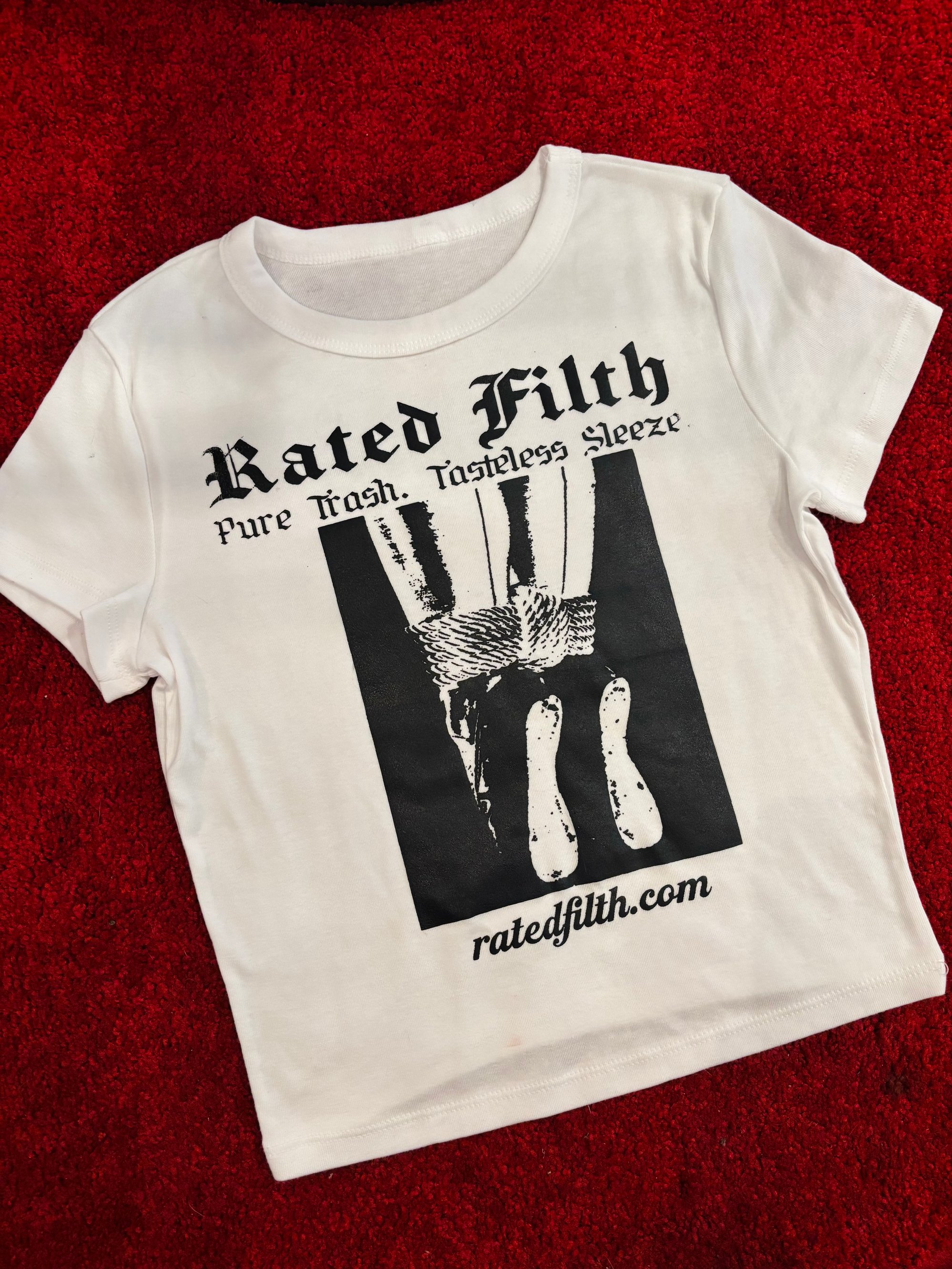 Rated Filth baby crop t — Pure trash. Tasteless sleaze.
